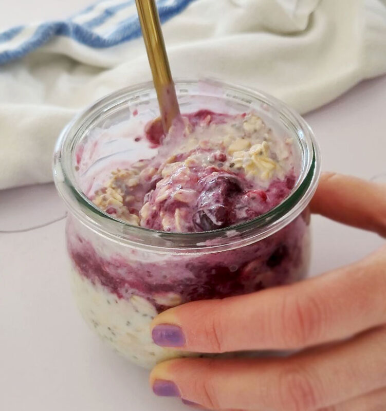 I also have a recipe for the mixed berry compote that goes into these oats so you can make it fresh at home anytime. It keeps well in the fridge so you can spoon it into breakfasts throughout the week. Mixed berry compote recipe.