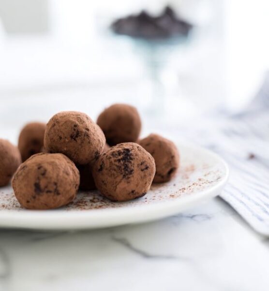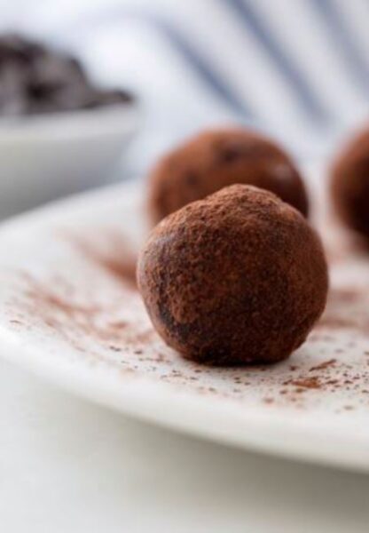 A little bit, yes. They’re creamy and sweet like fudge but softer in texture since you roll them into bite size pieces. The sweetened condensed milk gives them that classic chocolate flavor that’s rich and smooth.