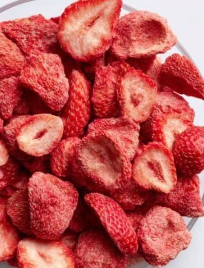 1. Take the freeze dried strawberries and cut them into smaller pieces. Set aside.