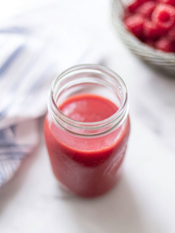 - Step 4: Strain out the raspberry seeds if you want your dressing smooth and pour into a jar or bottle and store in the fridge until ready to use.